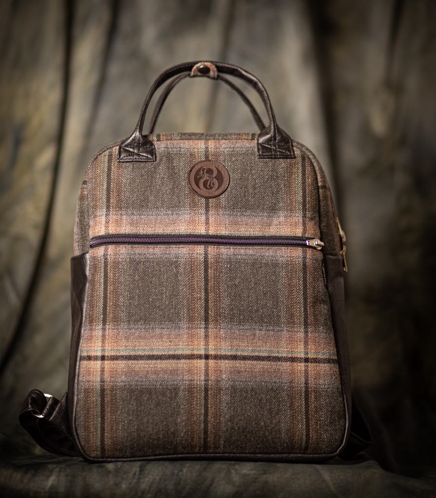 A külső oldal műbőr és textil kombinációja, bélése selyem. Az elején mély húzózáras zseb. A nyitása kétkocsis húzózárral történik. Belül húzózáras zseb, és egy gumipánt, ami a kulacsot vagy az esernyőt tarthatja. Hátoldalán állítható pánt. Fülei pantental összefoghatóak.