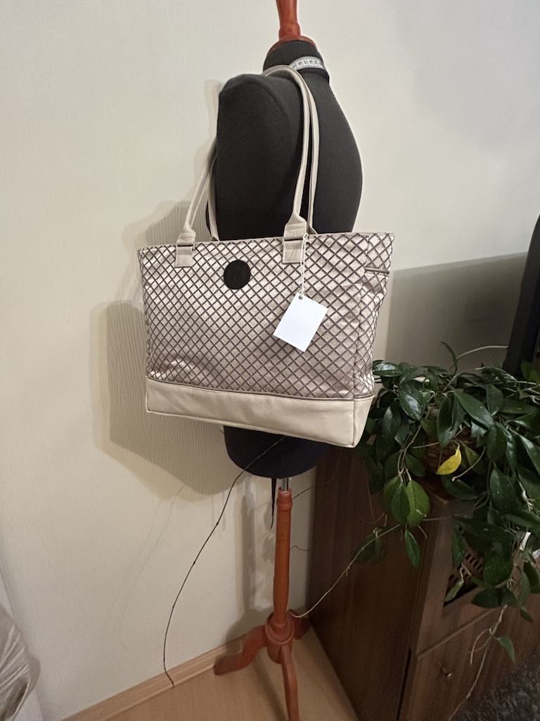 Kívül műbőrből, vagy textilből és műbőrből készült táska. Belsejében selyembélés, melyben húzózáras zseb található. A táska húzózárral zárható. Hosszabb füllel, mely vállra akasztható.